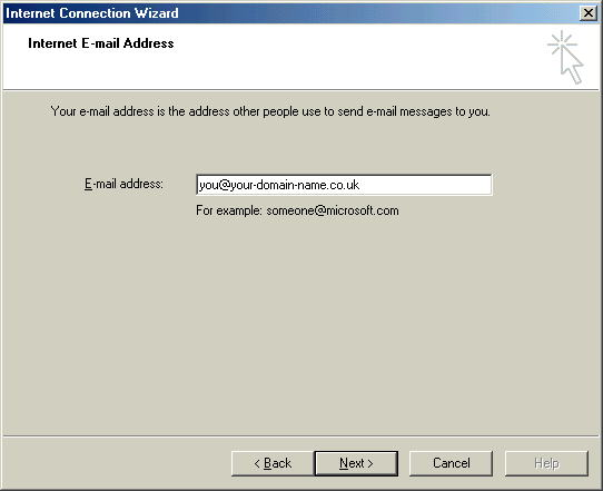 The following images will take you through the process of setting up email an account for your new domain name hosted by Britstream using Microsoft Outlook 2000 as an email client.